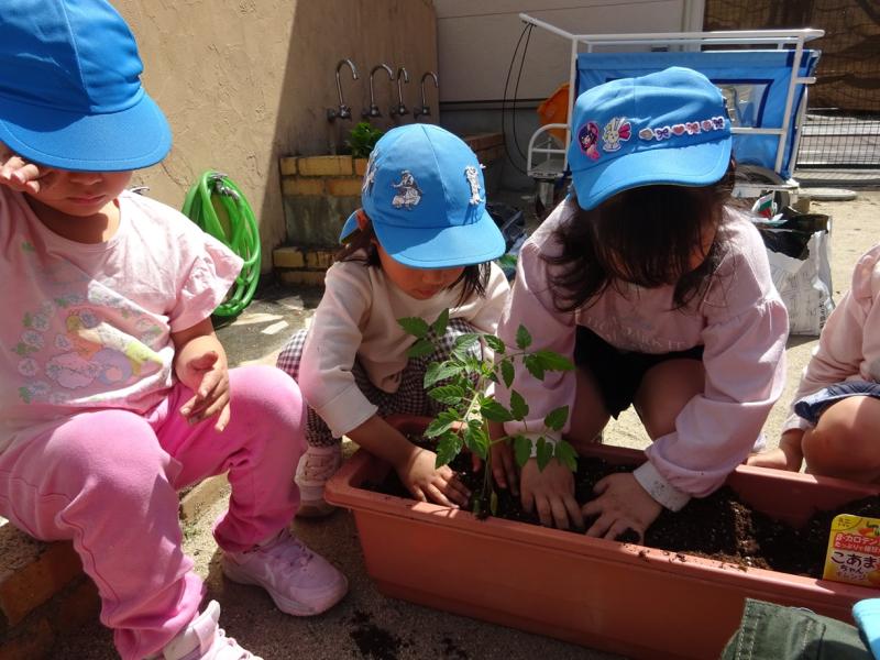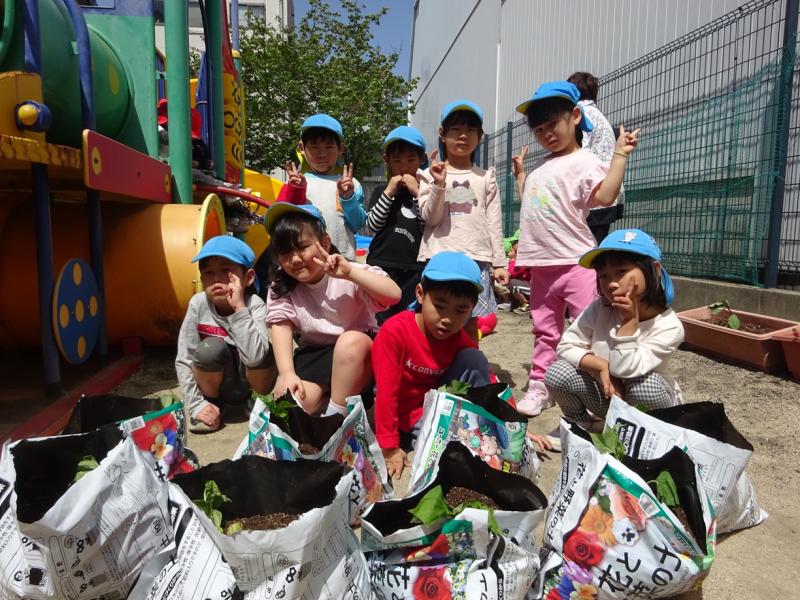 そら組は、みんなで話し合って決めた野菜のトマト・ナス・さつま芋の苗を買いました。
