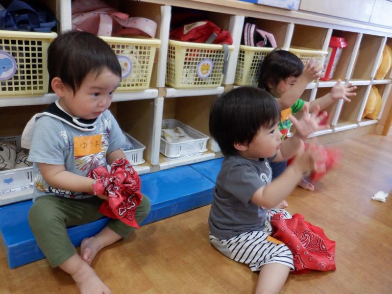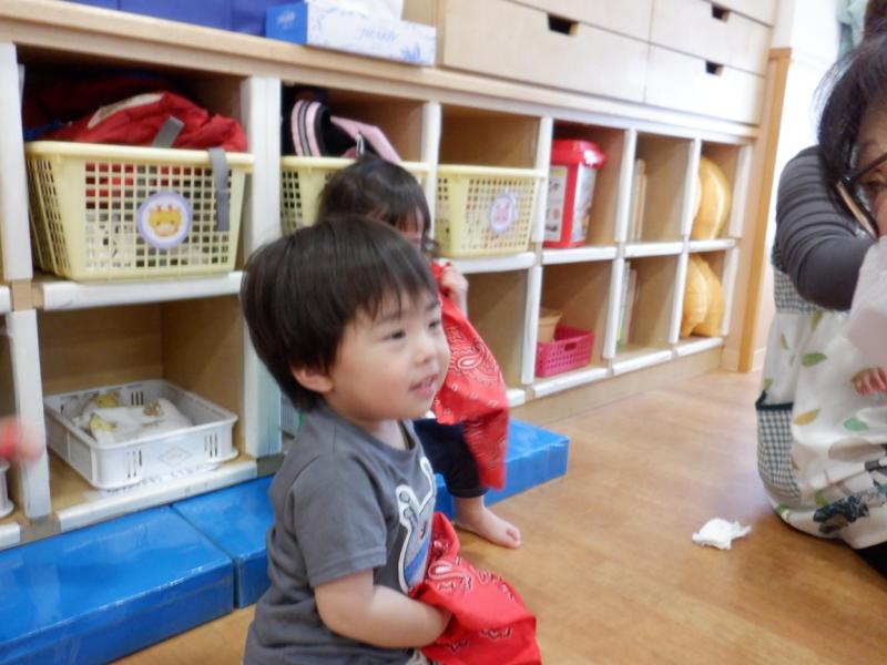 絵本を見たり布遊びをしました。