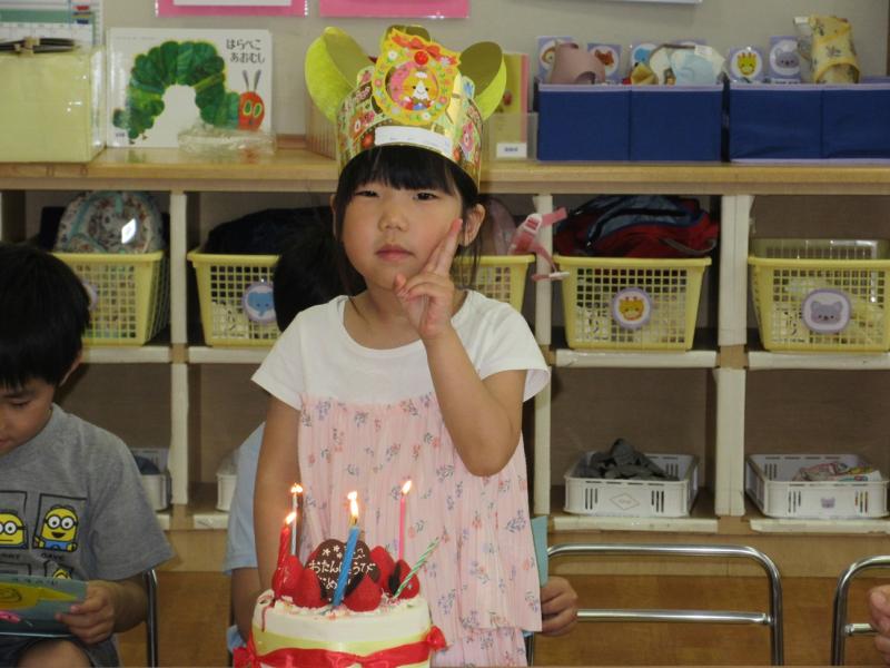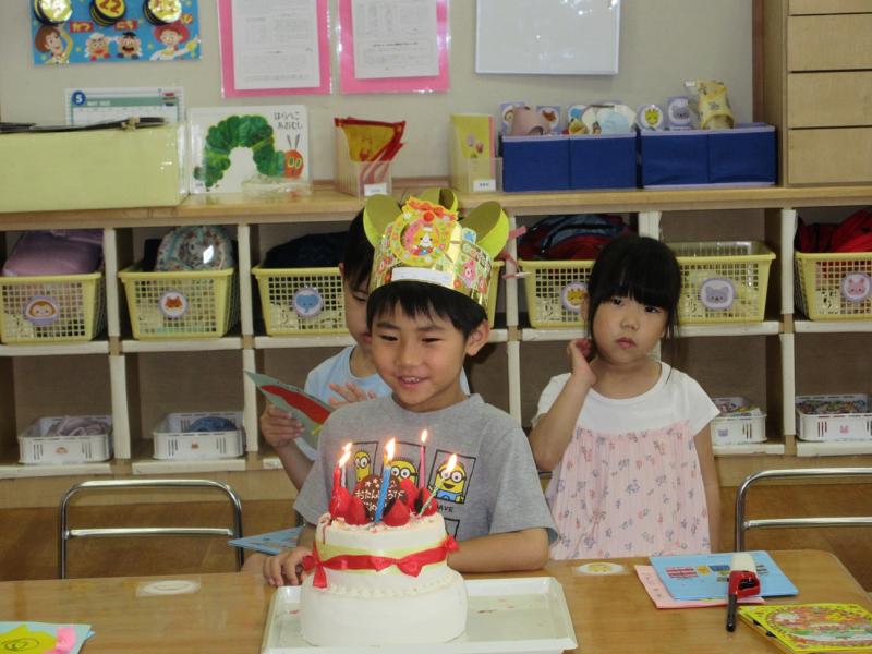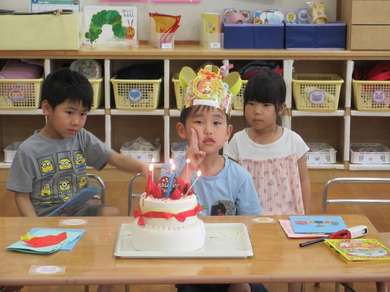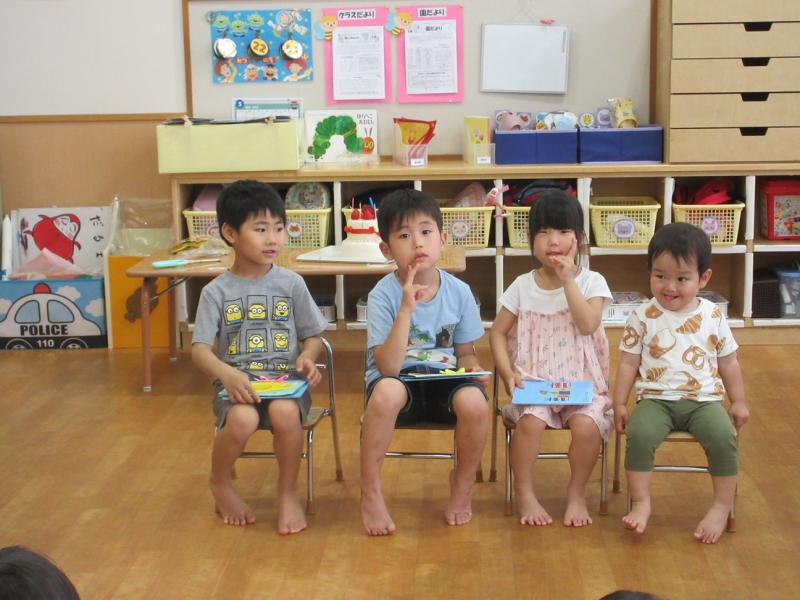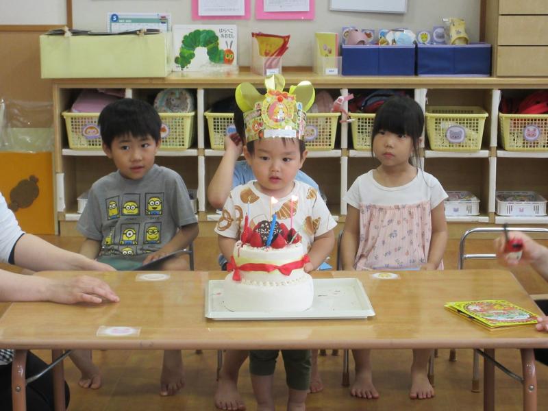 5月生まれの子どもたちは、みんなに見られ少し照れていました。