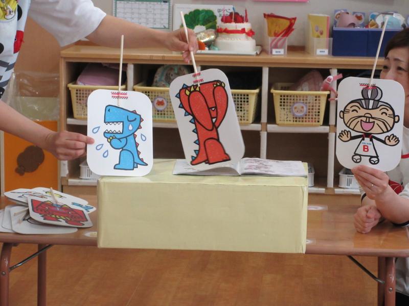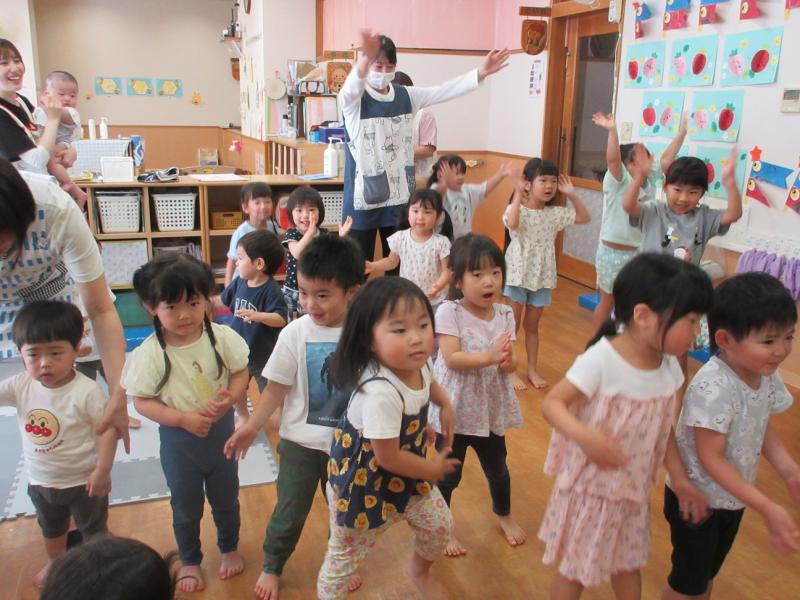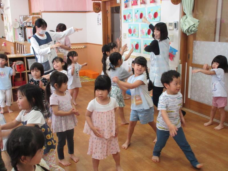 ペープサートを見て運動会でするパイナポー体操をして楽しく過ごしました。