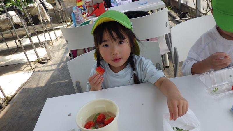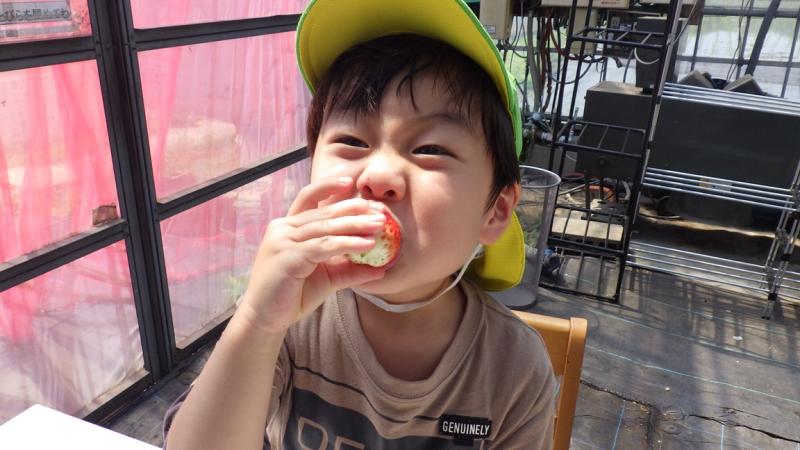 「これ赤いよー」「これ大きいー」と言いながら真っ赤なイチゴを口いっぱいにほおばって食べました。