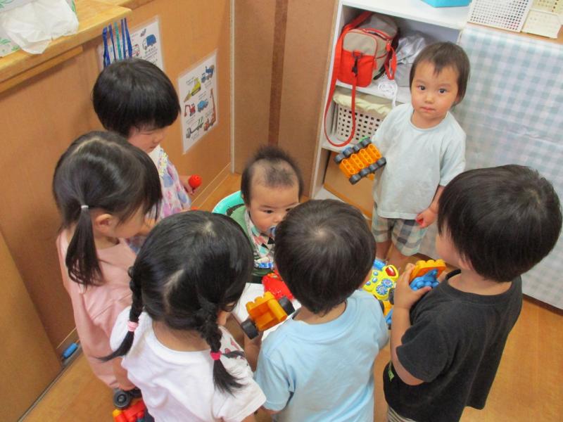 合同保育の時間、お姉ちゃんお兄ちゃんにかわいがってもらっていました♪