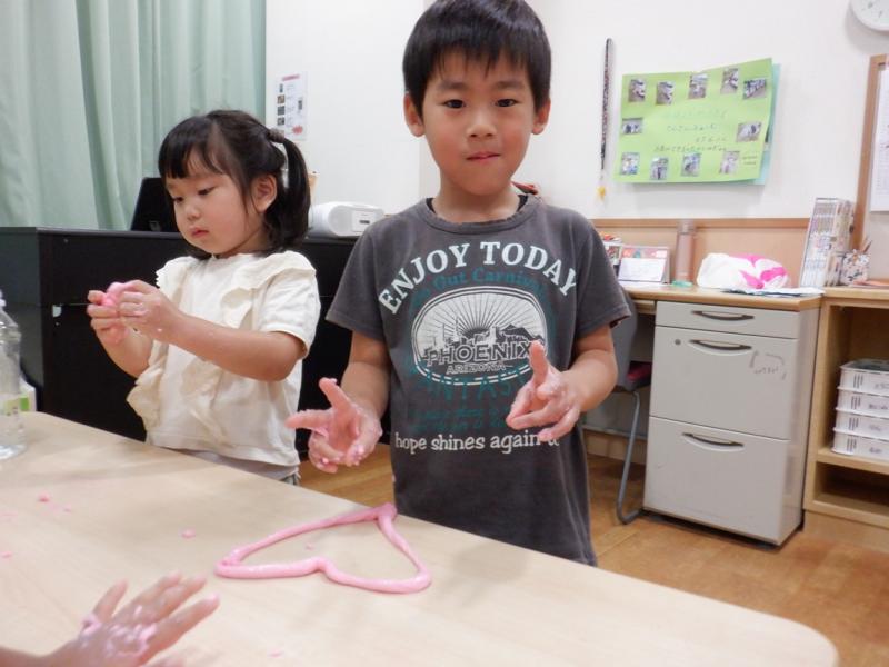 先日、幼児クラスでスライムを作り楽しみました。