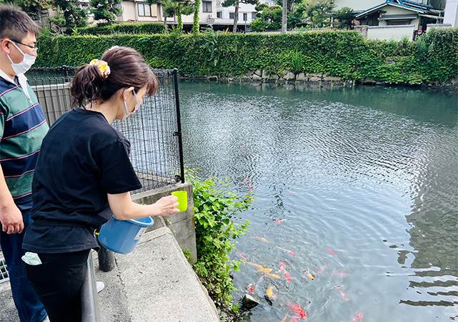 隣接する船入櫓の堀に泳ぐ鯉