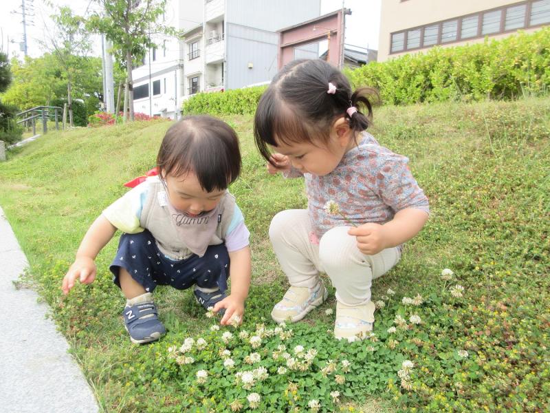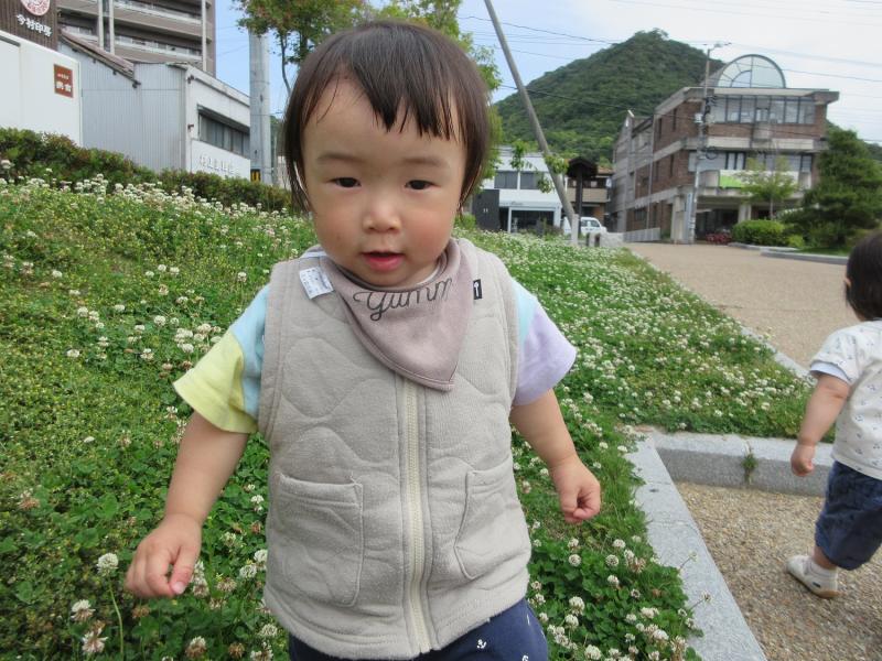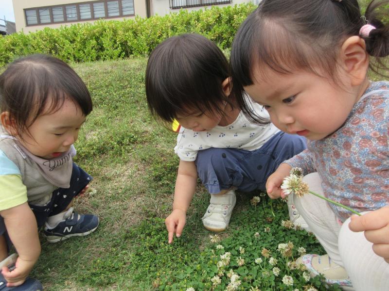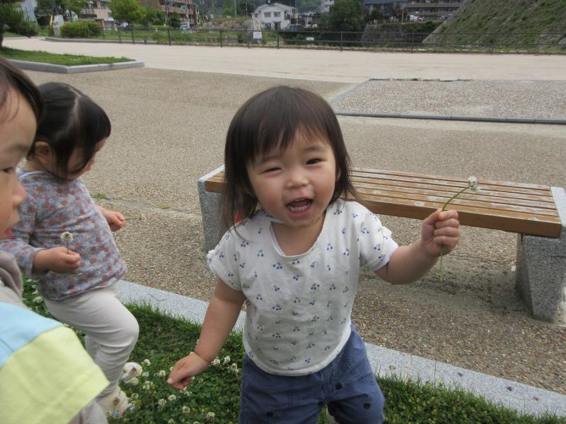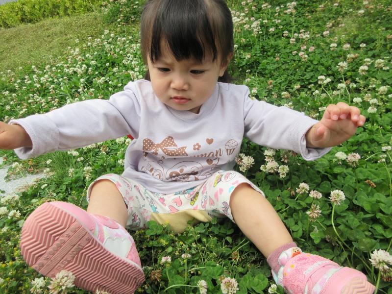 草の上に座ってびっくりしたり、気持ち良く過ごしたり、