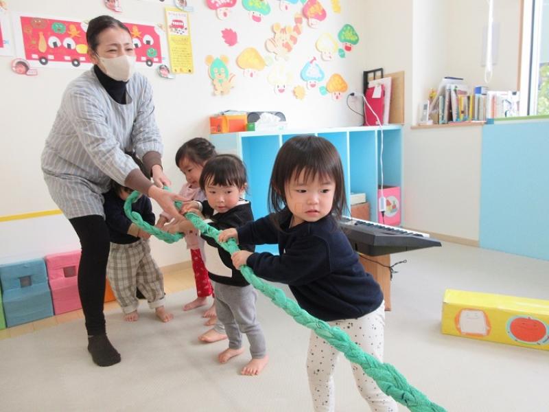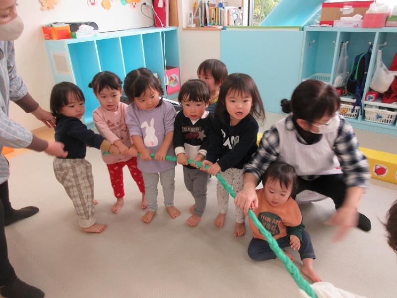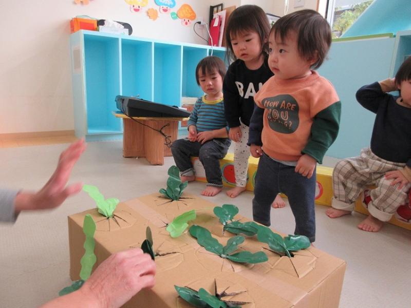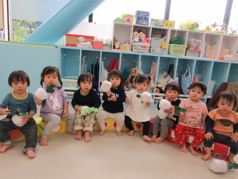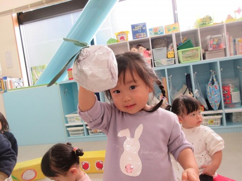 エプロンシアターの後は長い葉っぱをみんなで引っ張って、おおいなかぶを抜きました。