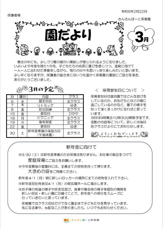 3月園だより