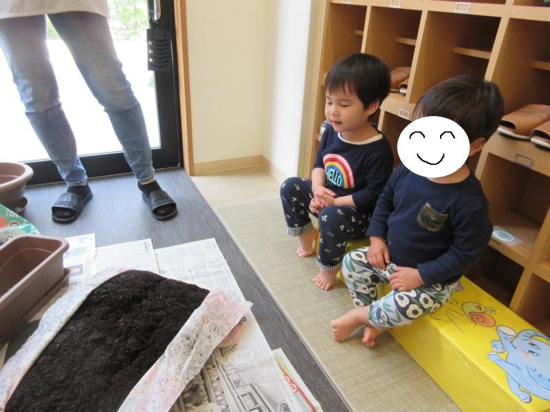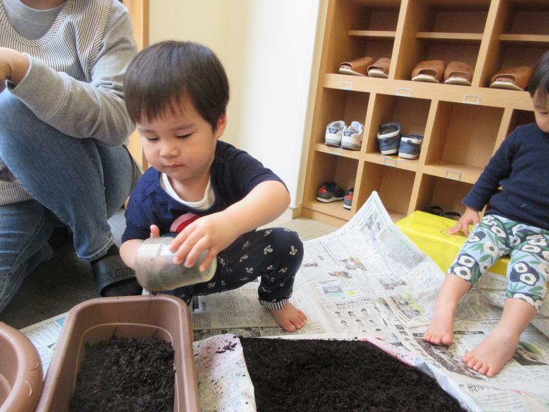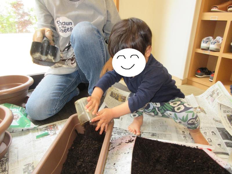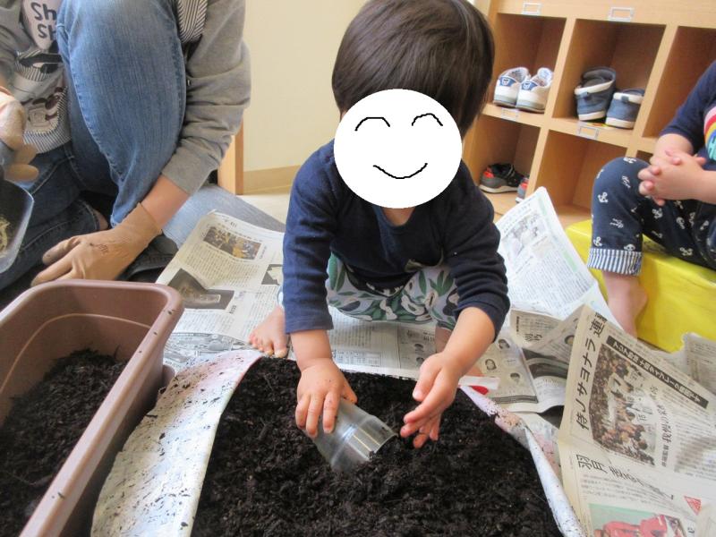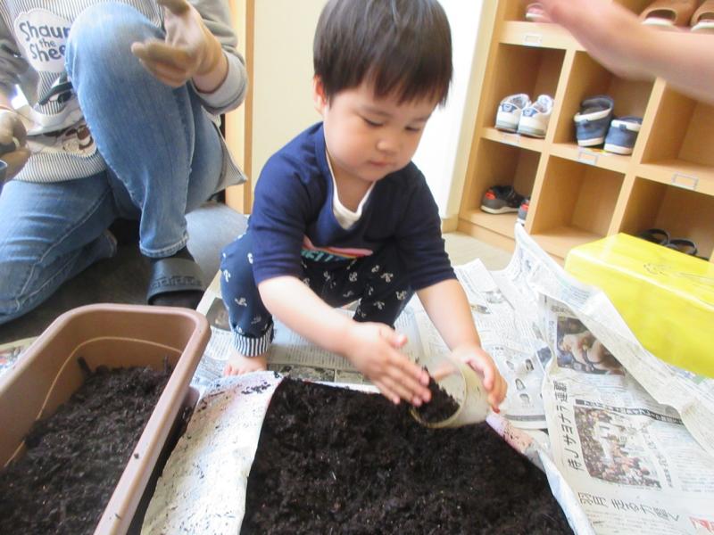 土を入れ終わると、「お布団できた」「お家できた」と、とっても嬉しそうでした。