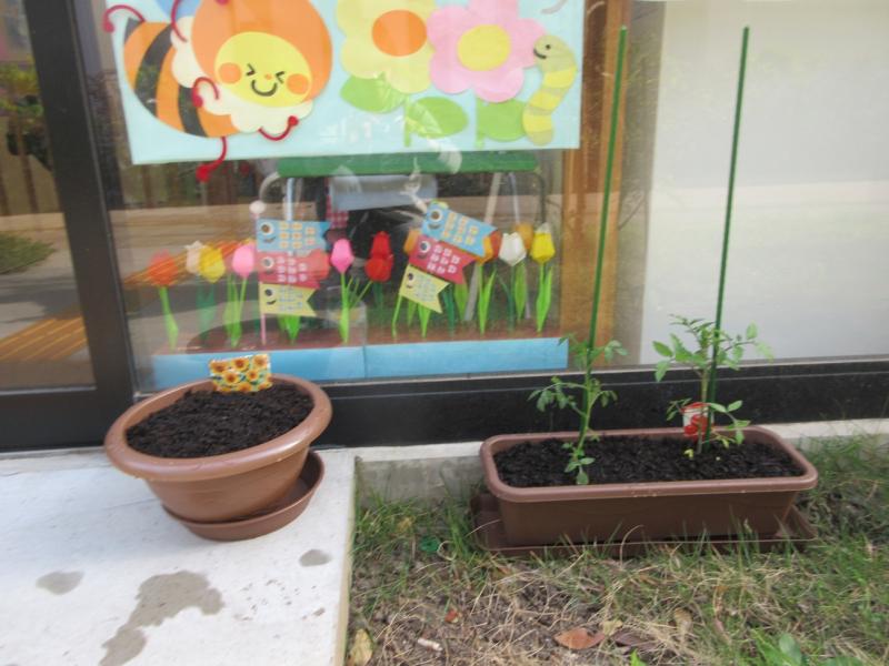 プランターでトマトとひまわりを育ててみることにしました。