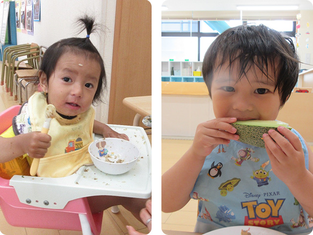 〈 1~2歳児 〉 ごっこ遊びやつもり遊びを豊かに展開し、会話のもとになる力を育てます。